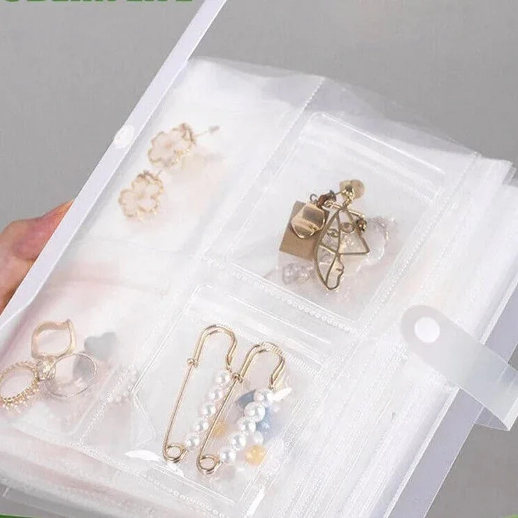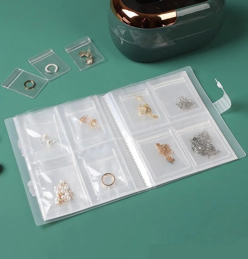 Nosso Livro Organizador de Joias é composto por compartimentos plásticos com fecho ziplock, proporcionando visibilidade instantânea à sua peça favorita em um piscar de olhos.