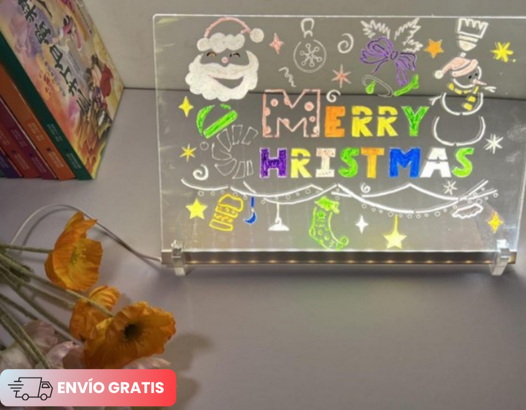 Estimule a criatividade️, escreva e aprenda.  Com iluminação LED integrada, fácil de limpar e reutilizar é linda e encantadora, todos terão vontade de usar.